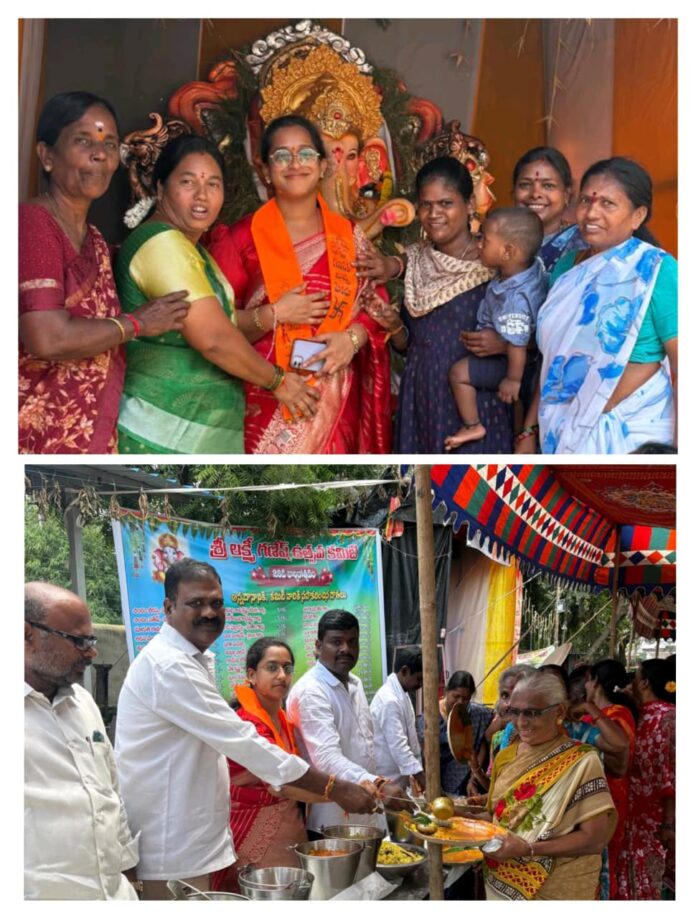 ఖమ్మం: ఈ ఏడాది శ్రీ గణేశ ఉత్సవాల్లో భాగంగా చివరి రోజు పలుచోట్ల అన్నదాన కార్యక్రమాన్ని కార్పొరేటర్ కన్నం వైష్ణవి ప్రసన్న కృష్ణ ప్రారంభించారు. ఈ సందర్భంగా వారు మాట్లాడుతూ శ్రీ గణేష్ నవరాత్రి ఉత్సవాలను అత్యంత భక్తిశ్రద్ధలతో జరుపుకొని, అన్నదాన కార్యక్రమాలు అదేవిధంగా విశేష పూజ కార్యక్రమాలు నిర్వహించిన కమిటీ సభ్యులందరికీ శుభాకాంక్షలు తెలిపారు. గణేష్ ఉత్సవాల ద్వారా ఐకమత్యం పెంపొందుతుందని ప్రజలందరూ ఒకే కుటుంబం వలె ఒకచోట చేరి కార్యక్రమాలు నిర్వహించడం సంతోషిదాయకముని వారు తెలిపారు. ఎవరి శక్తి కొలది వారు హితోదికంగా ఆర్థిక సహాయం చేసి మానవత్వాన్ని చాటుకున్నందుకు అభినందించారు. ఈ కార్యక్రమాన్ని నిర్వహించిన కమిటీ సభ్యుల్ని అభినందించారు. ఈ కార్యక్రమంలో డివిజన్ అధ్యక్షుడు షేక్ రజ్జి నాయకులు తొగరు భాస్కర్, ఏమ్మె రామకృష్ణ, సెల్వం జ్ఞానేశ్వర్, తుల్మా శ్రీనివాస్ బొల్లక శ్రీనివాస్, భైరోజు సంతోష్ తదితరులు పాల్గొన్నారు