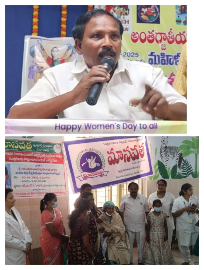 ఏలూరు ప్రభుత్వ బోధన ఆసుపత్రి నందు మానవతా స్వచ్ఛంద సేవ సంస్థ ఆధ్వర్యంలో మానవతా సంస్థ అధ్యక్షుడు డెవలప్మెంట్ కమిటీ అధ్యక్షులు మేతర అజయ్ బాబు అధ్యక్షతన జరిగినది అంతర్జాతీయ మహిళా దినోత్సవ సందర్భంగా హెచ్ఐవి సోకిన బాల బాలికలకు న్యూట్రిషన్ ఫుడ్ అందించడం జరిగింది అనేక సేవలు చేసిన మహిళ డాక్టర్స్ కు స్వచ్ఛంద సంస్థ డిపిఆర్సి కో కన్వీనర్ ఝాన్సీ మరియు గైనిక్ డాక్టర్ శైలజ మరియు ఫిజియోథెరపీ డాక్టర్ ఉండవల్లి ఉషారాణి గార్లను టీం అందరూ కూడా సత్కరించడం జరిగినది అజయ్ బాబు మాట్లాడుతూ మహిళలు గౌరవించాలి సమాజంలో సమానత్వంగా అన్నిఫలాలు అందించాలి మహిళా రక్షణకు సాధికారతకు వారు అభివృద్ధికి మనందరం తోడ్పాటు ఉండాలని సమానంగా మహిళలను గౌరవించాలని మహిళలు గౌరవించి వారి నున్న స్థానానికి ఎదిగించగలిగితే ఈ సమాజం అభివృద్ధి బాటలో ముందంజలో ఉంటుందని ఆయన అన్నారు