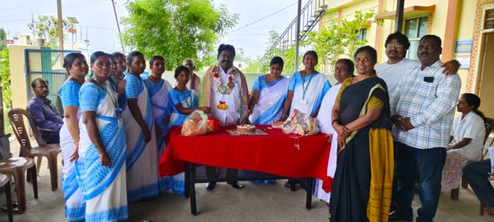 తెలంగాణ రాష్ట్ర పబ్లిక్ హెల్త్ అండ్ మెడికల్ ఎంప్లాయిస్ యూనియన్ ఐ ఎన్ టి యు సి జోగులాంబ గద్వాల జిల్లా ప్రెసిడెంట్ , రాష్ట్ర శ్రమశక్తి అవార్డు గ్రహీత ఆర్ పి జయప్రకాష్ ను రాజోలి మండల కేంద్రంలోని ప్రభుత్వ ప్రాథమిక ఆరోగ్య కేంద్రంలో మెడికల్ ఆఫీసర్ డాక్టర్ బి మధుబాబు మరియు వైద్య ఆరోగ్య శాఖ సిబ్బంది, ఆశా కార్యకర్తలు ఘనంగా సన్మానం చేశారు. ముందుగా కేక్ కట్ చేసి స్వీట్లు పంచిపెట్టారు. తదనంతరం జయప్రకాష్ ను శాలువా కప్పి పూలమాలలతో ఘనంగా సన్మానం చేశారు. ఈ సందర్భంగా మెడికల్ ఆఫీసర్ డాక్టర్ మధుబాబు మాట్లాడుతూ జయప్రకాష్ రాజోలి మండల ప్రాథమిక ఆరోగ్య కేంద్రంలో టిబి సూపర్ వైజర్ గా పనిచేసి జిల్లా లోనే ప్రథమ స్థానంలో కి తెచ్చారని ఆయన అన్నారు. మండల పరిధిలో ప్రతి గ్రామంలో టిబి ప్రోగ్రామ్ లను నిర్వహించి ప్రజలకు క్షయ వ్యాధి పై అవగాహన కల్పించారు అని ఆయన చెప్పారు. తనకు కేటాయించిన టార్గెట్ కు పైగా టిబి కేస్ లను చేయించి జిల్లా కలెక్టర్ మరియు జిల్లా వైద్య ఆరోగ్య శాఖ అధికారులు నుండి ఎన్నో అవార్డులు, రివార్డులు, ప్రశంసా పత్రాలు తీసుకుని రాజోలి పి హెచ్ సీ కు మంచి పేరు తెచ్చారని ఆయన వెల్లడించారు. జయప్రకాష్ లాగే అందరూ కస్టపడి పనిచేసి రాజోలి పి హెచ్ సీ కి మంచి పేరు తేవాలని, మీకు ఇచ్చిన టార్గెట్ ను పూర్తి చేయాలని రాజోలి మండల ప్రాథమిక ఆరోగ్య కేంద్రం మెడికల్ ఆఫీసర్ డాక్టర్ బి మధుబాబు తెలియజేశారు. ఈ కార్యక్రమంలో హెల్త్ సూపర్ వైజర్ హెలెన్, రామక్రిష్ణ, రంజిత్ కుమార్, చంద్రమోహన్,ఎమ్ ఎల్ హెచ్ పి వెంకటేశ్వరమ్మ, నర్సింగ్ ఆఫీసర్ శ్రీలత, మంజుల, ఏ ఎన్ ఎమ్ లు సుజాత, శిరీష, నిర్మల, మద్దమ్మ, కిస్టమ్మ, సువర్ణ, ఆశా కార్యకర్తలు వైద్య ఆరోగ్య శాఖ సిబ్బంది తదితరులు పాల్గొన్నారు