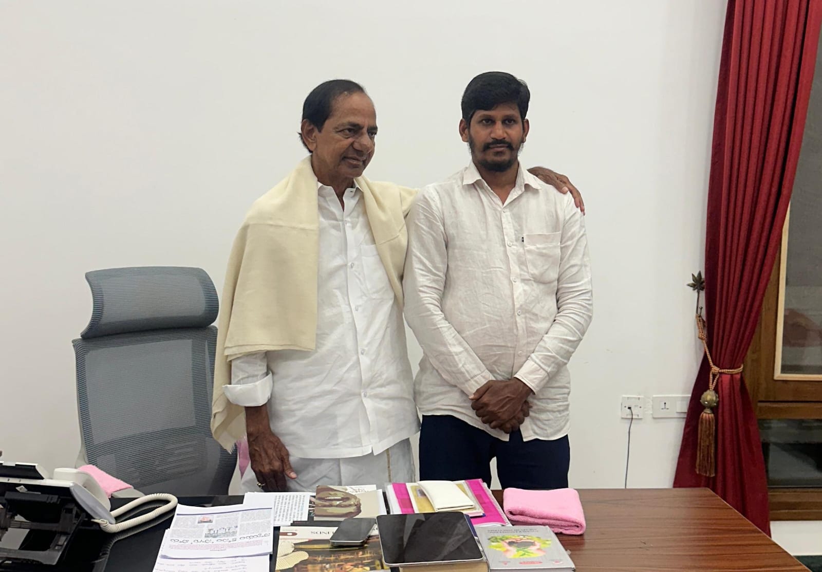 దేవరకొండ నియోజకవర్గం BRS పార్టీ యువజన నాయకులు షేక్ ఇస్మాయిల్, ఎర్రబెల్లి కెసిఆర్ గారి వ్యవసాయ క్షేత్రంలో తెలంగాణ తొలి ముఖ్యమంత్రి కేసీఆర్ గారిని మర్యాదపూర్వకంగా కలిసి ఆశీర్వాదం తీసుకున్నారు..
