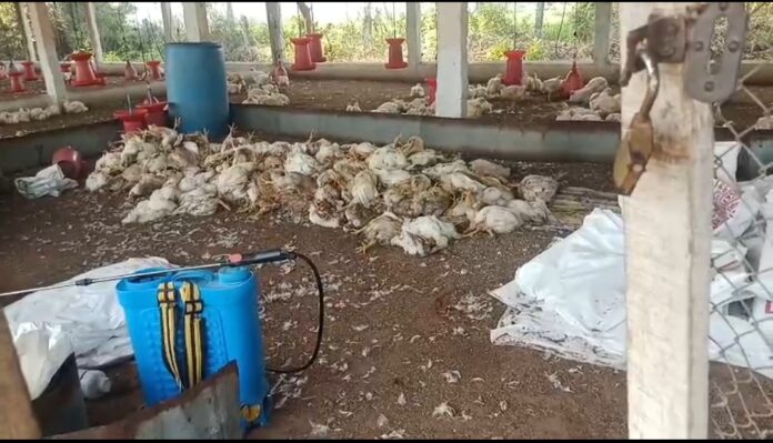 500 కోళ్లు చూస్తుండగానే చనిపోయిన పరిస్థితి ఏర్పడింది. కోళ్లు ఎందుకు చనిపోతున్నాయని తెలియక ఆందోళన చెందుతున్న రైతు చనిపోయిన 500 పైగా కోళ్లను గుంతలో పాతిపెట్టిన రైతు. చనిపోయిన కోళ్ల విలువ లక్ష రూపాయల వరకు ఉంటుందని రైతు తెలిపారు.