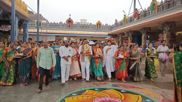 శ్రీ భ్రమరాంబిక సేవా సమితి నెల్లూరు సేవా బృందం ఆధ్వర్యంలో అమ్మవారికి ఆషాడసారె సమర్పణ సారె సమర్పణ అనంతరం శ్రీ మల్లికార్జున స్వామి కామాక్షితాయినిదర్శించుకున్న శృతి ప్రత్యేక పూజల అనంతరం శృతికి ఆశీర్వచనం పలికిన వేద పండితులుశ్రీ కామాక్షితాయిని దర్శించుకుని సారె సమర్పించడం చాలా ఆనందంగా ఉందని, అమ్మవారి ఆశీస్సులు ప్రజలందరికీ ఉండాలని ఆకాంక్షించిన సోమిరెడ్డి శృతి