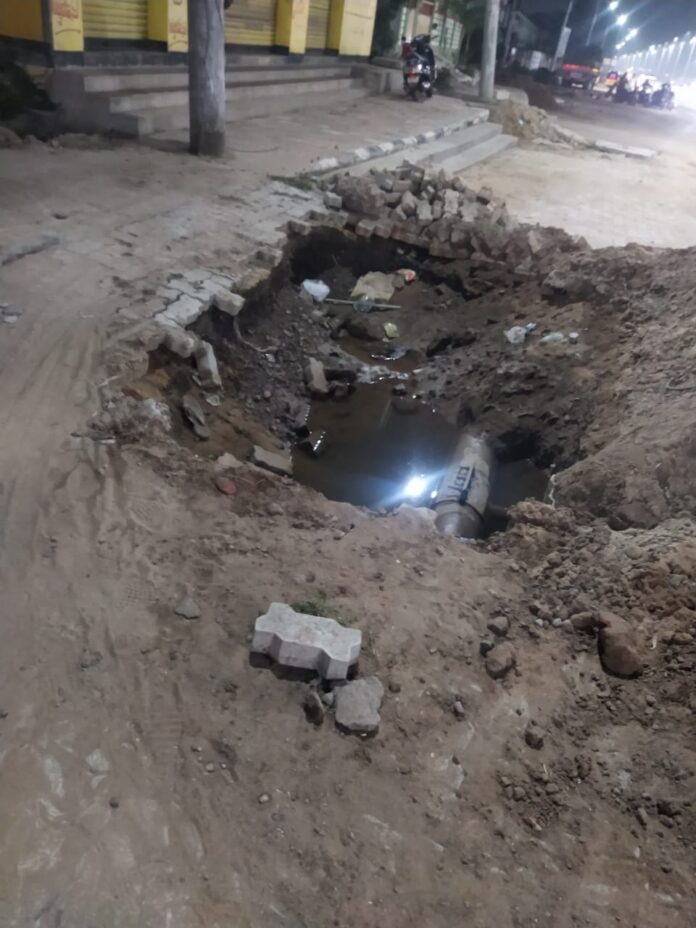 బాపట్ల కుమ్మరిపాలెం నందు మంచినీరు పైపులైను మరమ్మత్తులు నిమిత్తం 10 రోజులు క్రితం గుంట తవ్వి వదిలేయడం జరిగింది. ..