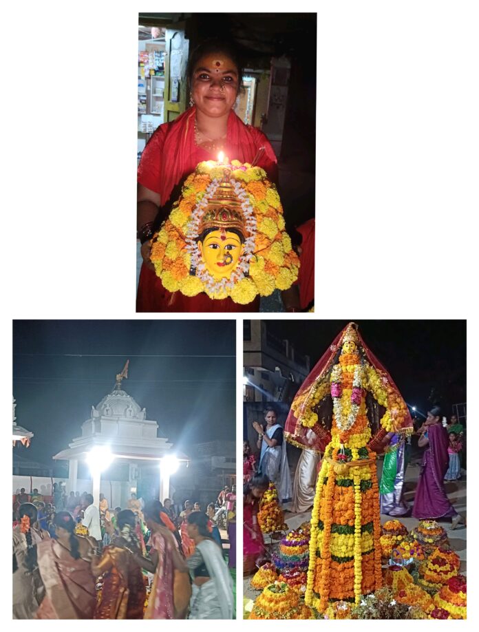 నేటి వారిధి న్యూస్ (ప్రతినిధి) ఖమ్మం రూరల్ మండలం మంగళగూడెంలో బతుకమ్మ పండుగలో భాగంగా చివరి రోజైన సద్దుల బతుకమ్మతో పండుగ ముగియనుంది. 9వ రోజు సద్దుల బతుకమ్మను నిర్వహించే మహిళలు 9 దొంతరలుగా బతుకమ్మను పేర్చి, అంతా ఒకచోట చేరి ఆడి పాడి బతుకమ్మలను గంగమ్మ లో నిమజ్జనం చేస్తారు.కులాలకు అతీతంగా, పేద ధనిక తారతమ్యం లేకుండా, చిన్న పెద్ద అందరూ కలిసి ఘనంగా జరుపుకునే పండుగ ఈ బతుకమ్మ పండుగ.నేడు సద్దుల బతుకమ్మ నాడు తంగేడు, గునుగు, కట్ల, చేమంతి, బంతి, మల్లె, మొల్ల, మొగలి, సంపెంగ, కలువ, తామర వంటి పూలతో బంగారు బతుకమ్మను పేర్చి సాంప్రదాయబద్దంగా గౌరమ్మను పూజిస్తారు. రాగిపళ్ళెంలో తంగేడు ఆకులు అమర్చి వాటిపై తంగేడు పూల కట్టలు పేర్చి, మధ్య మధ్యలో ఇతర పూలను వినియోగిస్తూ చాలా అందంగా బతుకమ్మను పేరుస్తారు. దానిపై పసుపుతో గౌరమ్మను తయారు చేసి పెడతారు.ఇలా తయారు చేసిన బతుకమ్మను పూజించి, సాయంత్ర సమయంలో ఆడబిడ్డలు అందరూ పట్టు చీరలు ధరించి అందంగా ముస్తాబై ఒక చోటకు చేరుతారు. బతుకమ్మలను మధ్యలో పెట్టి ఆడి పాడి బతుకమ్మను చివరకు గంగమ్మ చెంతకు చేరుస్తారు. ఆపై గౌరమ్మకు నైవేద్యంగా పెట్టిన ప్రసాదాన్ని మహిళలు అందరూ పంచుకుంటారు. ఈ కార్యక్రమంలో మహిళలు గ్రామ పెద్దలు పెద్ద ఎత్తున పాల్గొన్నారు