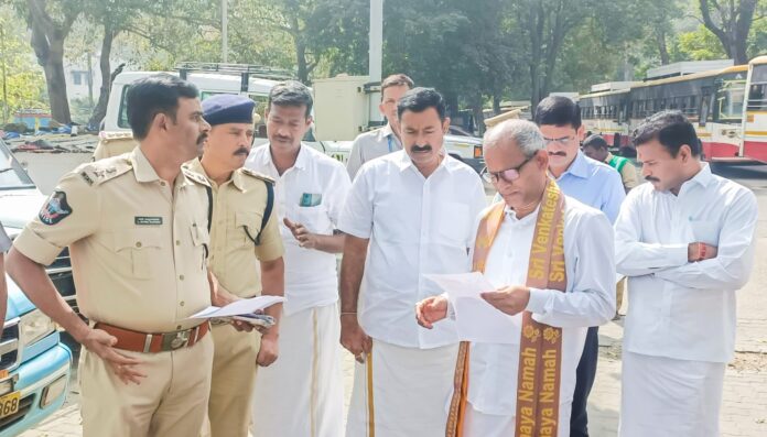 జనవరి 10 నుండి 19 వరకు జరుగనున్న వైకుంఠ ద్వార దర్శనాల సందర్భంగా భక్తుల రద్దీ అధికంగా ఉండే అవకాశం ఉన్నందున, టీటీడీ అన్ని ఏర్పాట్లను శ్రద్ధగా చేపడుతోంది. ఈ క్రమంలో, టీటీడీ అదనపు ఈవో వెంకయ్య చౌదరి తిరుపతి జిల్లా ఎస్పీ శ్రీ ఎల్ సుబ్బరాయుడు ఐపీఎస్ ., టీటీడీ సీవిఎస్వో శ్రీధర్ గారితో కలిసి ఏర్పాట్లను పరిశీలించారు.