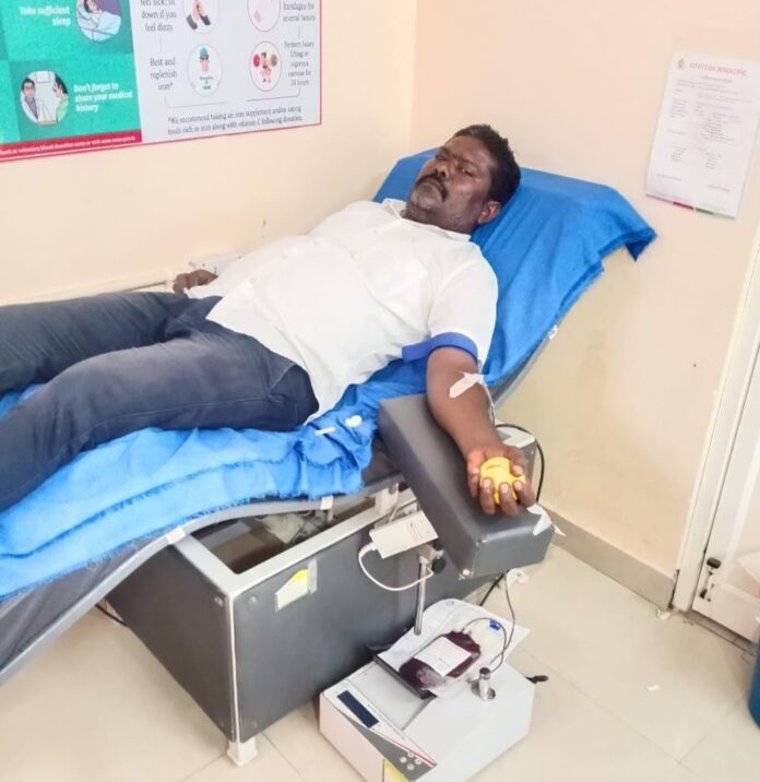 కామారెడ్డి జిల్లా కేంద్రంలోని ప్రైవేటు వైద్యశాలలో వసంత (28) కు ఓ పాజిటివ్ రక్తం అవసరం కావడంతో సింగరాయపల్లి గ్రామానికి చెందిన మిరుదొడ్డి శ్రీనివాస్ సకాలంలో రక్తాన్ని అందజేసి ప్రాణదాతగా నిలవడం జరిగిందని ఐవిఎఫ్ సేవాదళ్ రాష్ట్ర చైర్మన్,రెడ్ క్రాస్ జిల్లా సమన్వయకర్త డాక్టర్ బాలు తెలియజేశారు.ఈ సందర్భంగా డాక్టర్ బాలు మాట్లాడుతూ 18 సంవత్సరాల క్రితం ఆపదలో ఉన్న వారికి సకాలంలో రక్తాన్ని అందజేయాలని ఉద్దేశంతో రక్తదాన కార్యక్రమాలను ప్రారంభించడం జరిగిందని,మూడు సంవత్సరాల నుండి తల సేమియా వ్యాధితో బాధపడుతున్న చిన్నారుల కోసం మెగా రక్తదాన శిబిరాలను ఏర్పాటు చేసి నాలుగు వేల యూనిట్లను అందజేసి చిన్నారుల ప్రాణాలను కాపాడడం జరిగిందని అన్నారు.రక్తదానం పట్ల ఉన్న అపోహలను విడనాడి తోటి వారి ప్రాణాలను కాపాడడానికి ముందుకు రావాలని విజ్ఞప్తి చేశారు. ఈ కార్యక్రమంలో అంకం బాలకిషన్,బ్లడ్ బ్యాంక్ సిబ్బంది పాల్గొనడం జరిగింది.