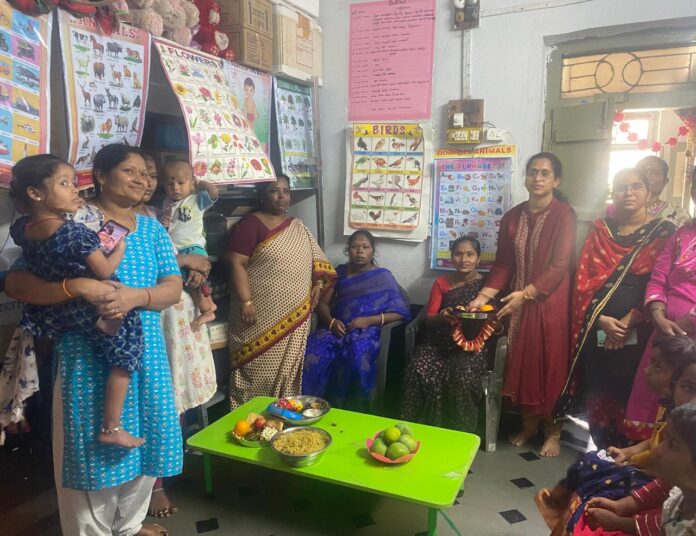ఖమ్మం స్థానిక 46వ డివిజన్ పరిధిలోని సారది నగర్ అంగన్వాడి కేంద్రంలో నిర్వహించిన సామూహిక సీమంతాల కార్యక్రమంలో కార్పొరేటర్ కన్నం వైష్ణవి పాల్గొన్నారు. ఈ సందర్భంగా వారు మాట్లాడుతూ గర్భిణీ స్త్రీలు ఆరోగ్య విషయంలో జాగ్రత్తగా ఉండాలని ఎప్పటికప్పుడు వైద్యుల పర్యవేక్షణలో ఉండాలని తెలిపారు. వారి సూచనల ప్రకారం ఆరోగ్యంపై శ్రద్ధ వహించాలని కోరారు. తెలంగాణ రాష్ట్ర ప్రభుత్వం మహిళలకు అండగా ఉంటూ అనేక సంక్షేమ కార్యక్రమాలు చేపట్టిందని అందులో భాగంగా అంగన్వాడి కేంద్రాలలో పౌష్టికాహారం అందించడం మరియు ఆరోగ్యం పట్ల తగు జాగ్రత్తలు చెప్పడం ద్వారా ఆరోగ్యంగా మహిళలు ఉండేలా తగు కార్యక్రమాలు చేపట్టడం జరుగుతుందని వారు తెలిపారు. అంగన్వాడి కేంద్రాలు ప్రజలకు ముఖ్యంగా మహిళలకు పిల్లలకు అందుబాటులో ఉంటూ సేవలందిస్తున్నాయని కొనియాడారు. ముఖ్యమంత్రి రేవంత్ రెడ్డి నేతృత్వంలో మహిళలకు ఉచిత బస్సు ప్రయాణం కల్పించడం మంచి కార్యక్రమం అని వారు తెలిపారు. ఈ కార్యక్రమంలో అంగన్వాడి టీచర్ శోభ స్థానికులు లక్ష్మి మల్యాల రమ, చంద్రమ్మ ఉపేంద్రమ్మ తదితరులు పాల్గొన్నారు