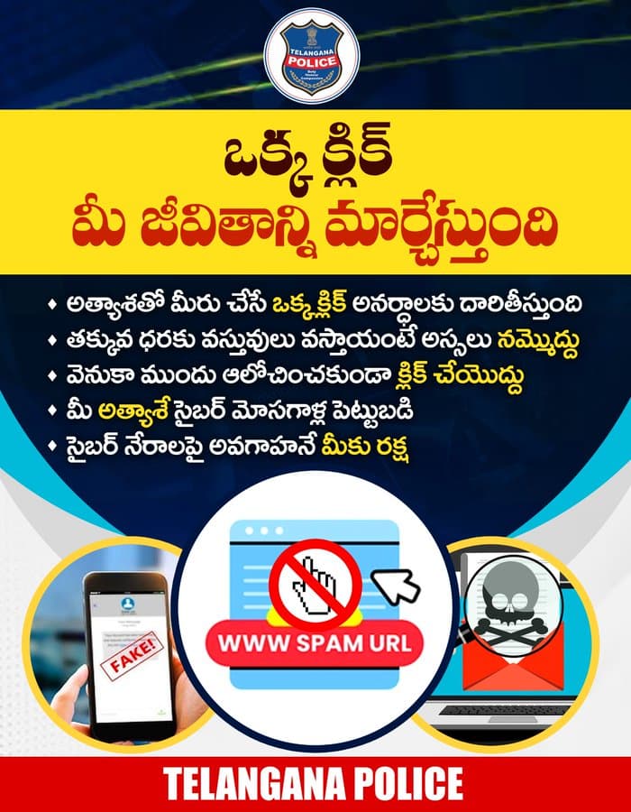 సైబర్ నేరగాళ్ల పట్ల అప్రమత్తంగా ఉండాలని తెలంగాణ పోలీసుల హెచ్చరిక